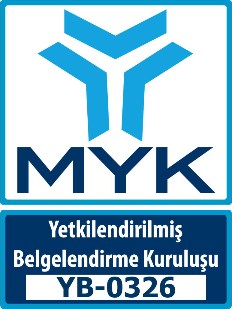 Mesleki Yeterlilik Kurumu tarafından yetkilendirilmiş belgelendirme faaliyetleri kapsamında, çalışanların mesleki yeterliliklerini ölçüyor ve başarı durumuna göre MYK Mesleki Yeterlilik Belgesi düzenliyoruz.